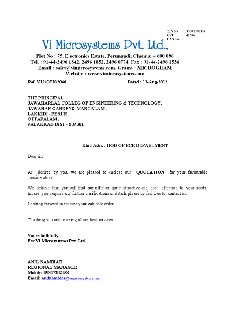 If you now strategy to compose a submission letter, you want to. But, as we all know, it is not possible to be present everywhere, all the time. Free download and customize it according to the sample text below. Quotations are a type of business letter, which indicates you want to use a distinctive structure. What is quotation letter and its purpose.